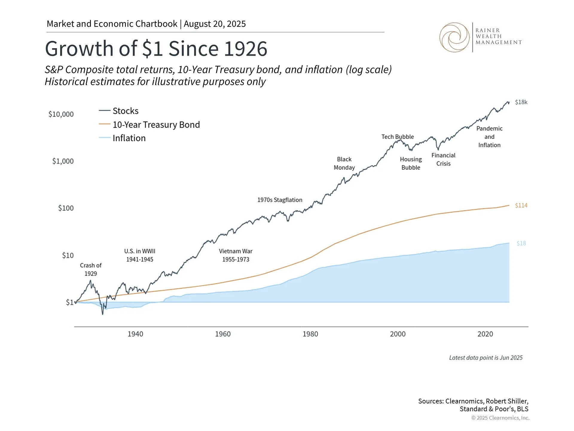 For investors who lived through the inflation of the 1970s and early 1980s, or the price surges that followed the pandemic, this pattern should feel familiar. On the one hand, inflation is more stubborn than many would like, and there are continuing concerns that tariffs will raise consumer prices. On the other hand, today’s inflation is occurring alongside healthy employment, consumer spending, and corporate profits. This creates a complex environment for both investors and policymakers as they balance growth and inflation.