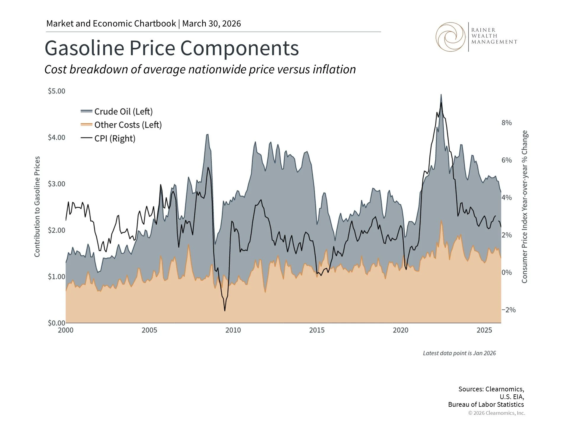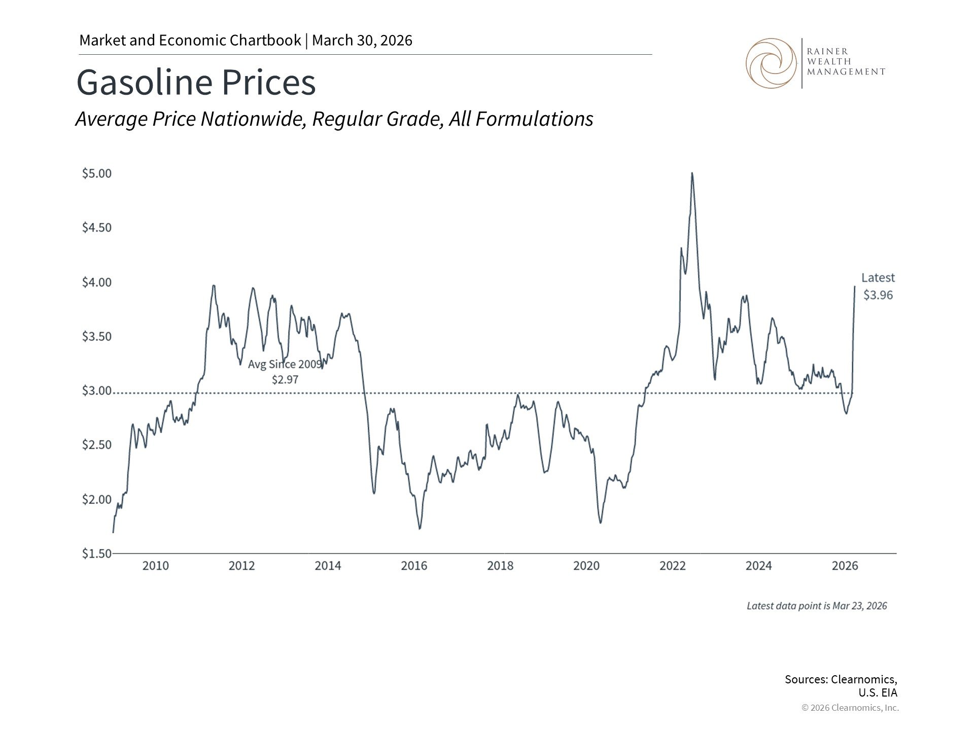 The bottom line? Rising gasoline prices are a burden for consumers and will likely drive headline inflation higher. However, history shows that markets and the economy have navigated past energy shocks. Investors should maintain a long-term perspective, avoid overreacting to daily headlines, and stay focused on their financial plans.